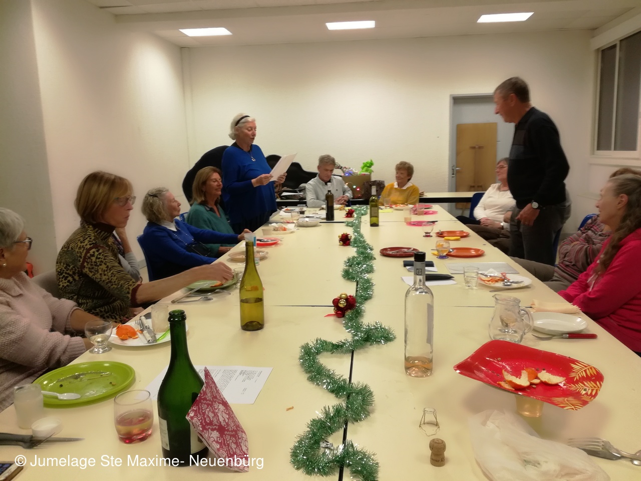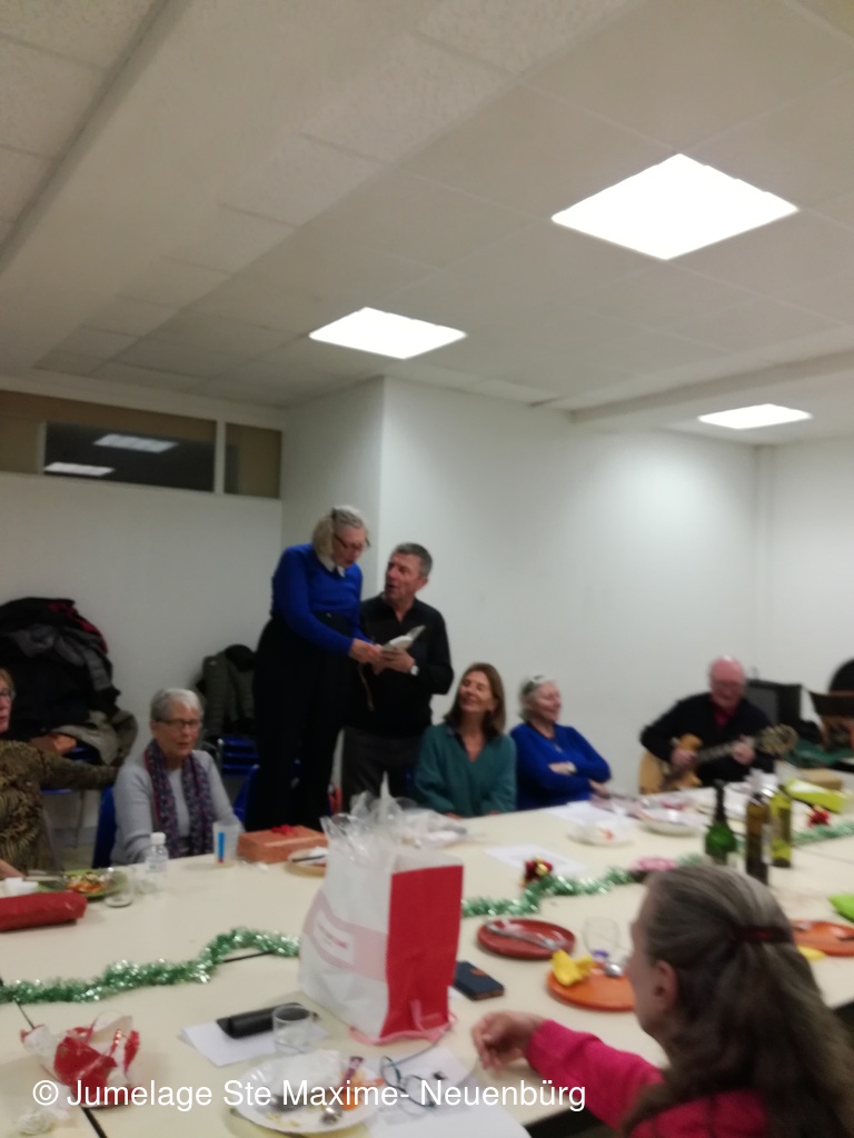 Ambiance chaleureuse sur fond musical, même si la "chorale" n'est pas encore au point...Stollen de Noël , papillottes, guirlandes et petits cadeaux...