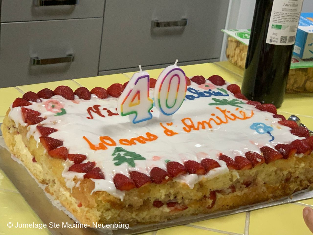 Pour terminer le soirée, le traditionnel buffet comprenait cette fois-ci un beau gâteau d'anniversaire, orné de bougies pour célébrer les 40 ans d'amitié de Valérie et Nicole...